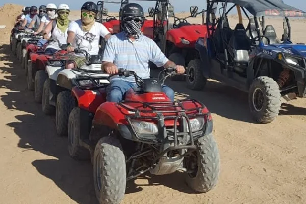 The Perfect Fusion of Adrenaline, Culture & Natural Wonder! Experience an exhilarating 3-hour safari through the magnificent Sahara that masterfully blends heart-pounding thrills, authentic culture, and breathtaking natural beauty! Conquer towering sand dunes on a powerful quad bike, discover timeless traditions in a genuine Bedouin village, and embrace the desert peaceful vastness from atop a majestic camel.
